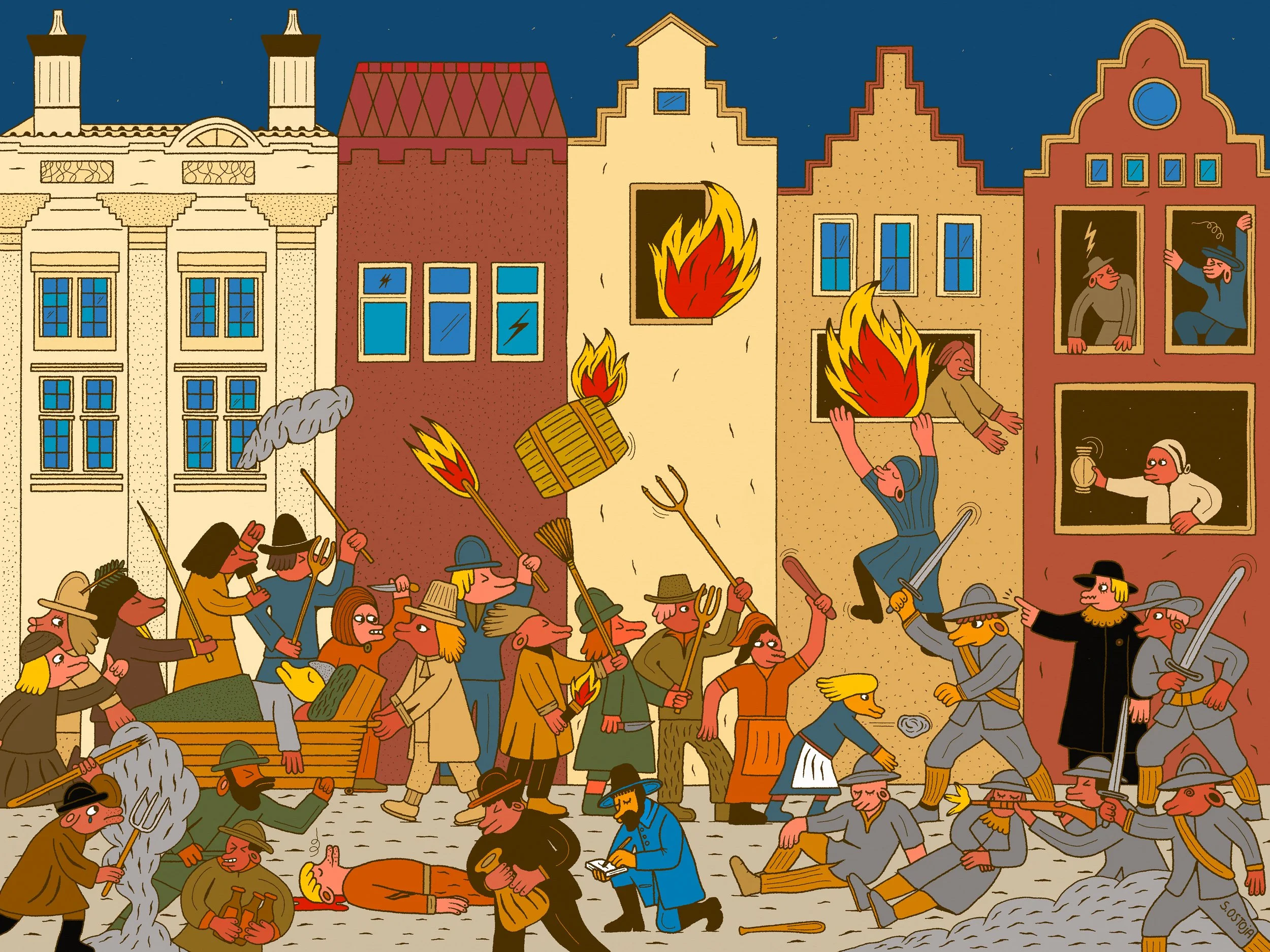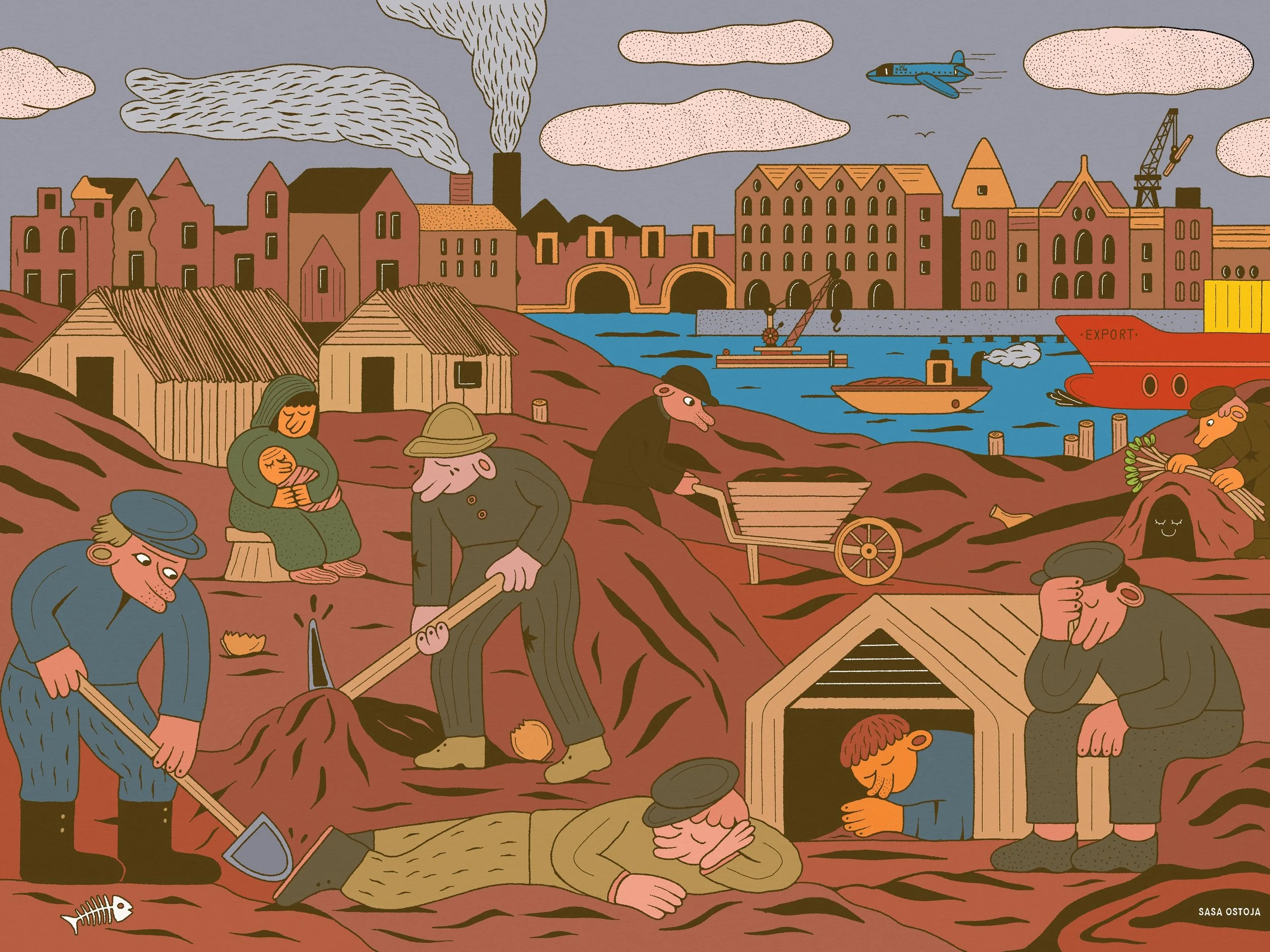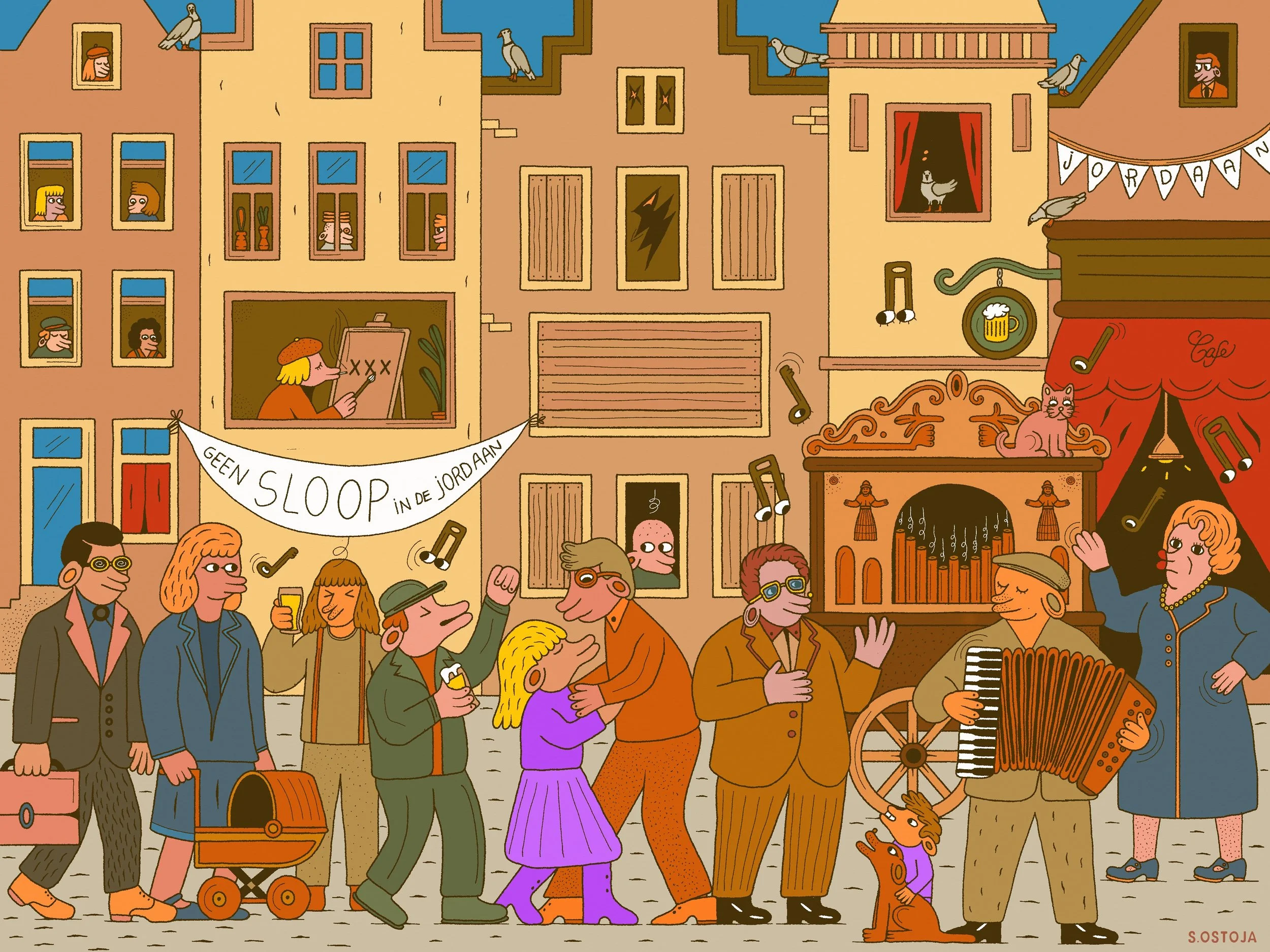 Saša was asked to create 5/49 detailed illustrations that accompany this new educational material. For this request he dove into his love for history, the city of Amsterdam, and bringing these specific stories to life again, through his art. He drew ‘Grachtengordel’, ‘Aansprekersoproer’, ‘Rebrandt’, ‘Jordaan, and