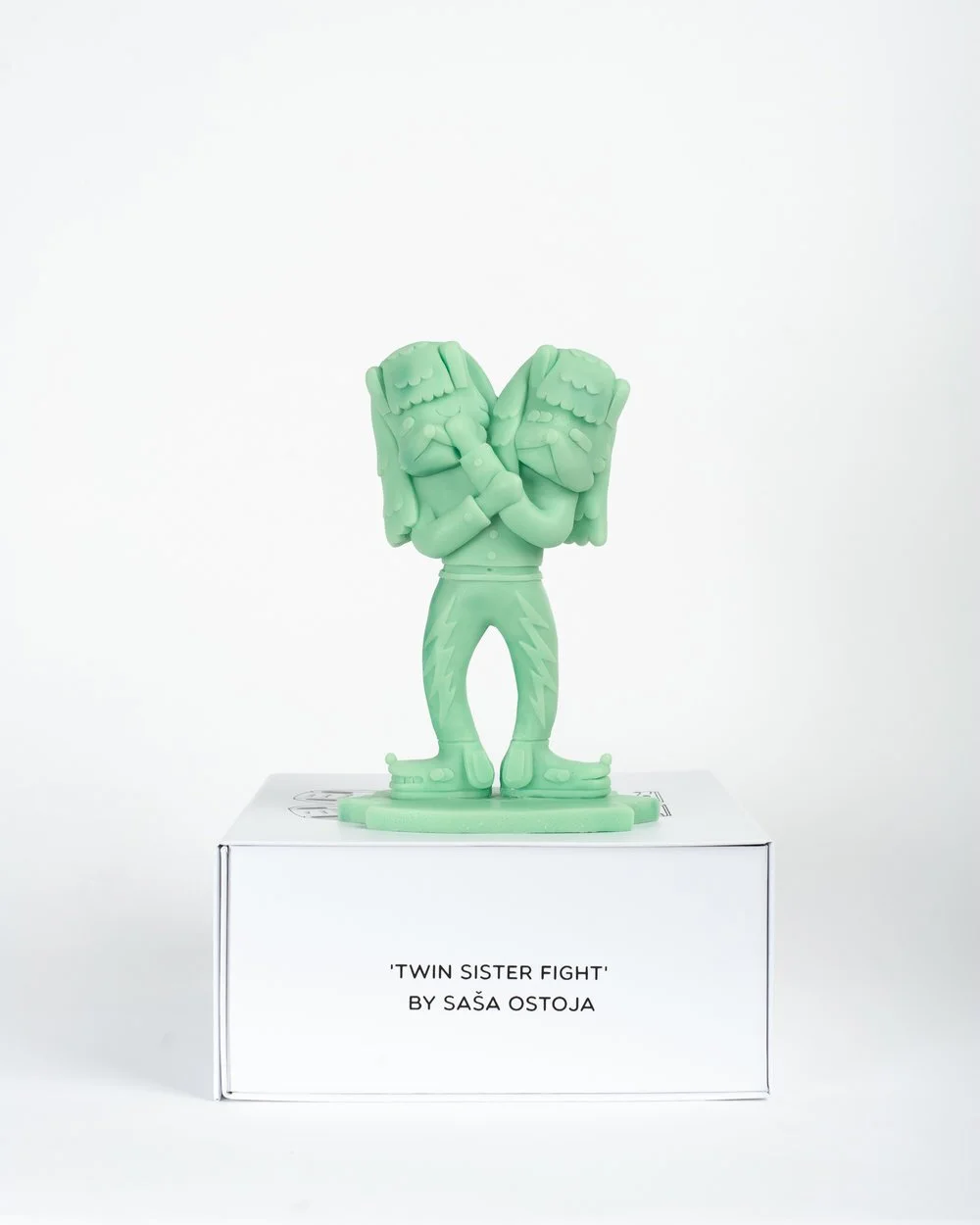 In collaboration with illustrator Saša Ostoja, Coodre created a casted resin sculpture based on Saša’s illustration ‘Twin sister fight’. The limited edition sculpture is available in the color jade green and comes in a custom screen-printed box (sold out).